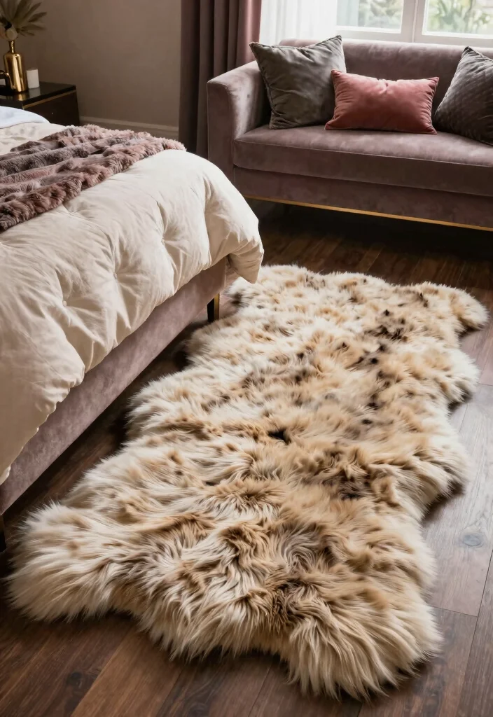 Integrate a faux fur rug by: