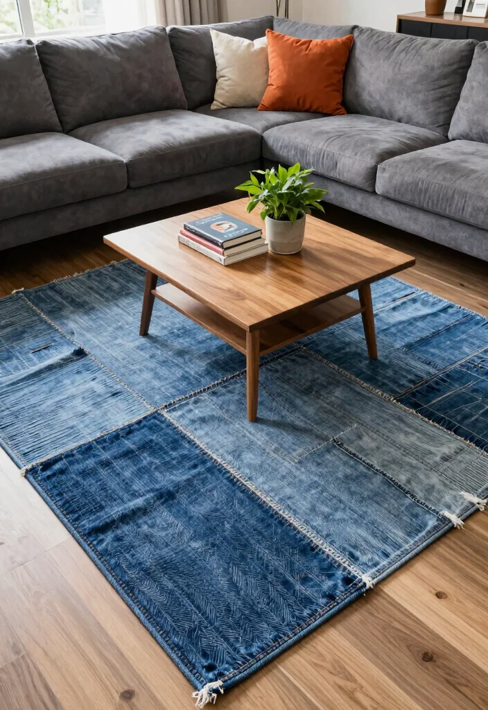 To incorporate upcycled denim rugs effectively: