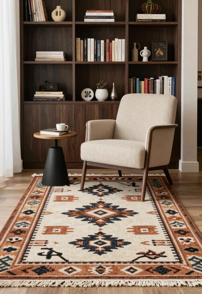For living rooms, choose a contemporary area rug that fits under the front legs of all seating to create a cohesive anchor—common sizes include 8×10 or 9×12, adjusted to room proportions. For dining rooms, pick a rug large enough so that chairs remain on the rug even when pulled out. In bedrooms, a rug that extends beyond the sides of the bed adds warmth and balance. Measuring carefully and selecting the right scale ensures your modern rugs and furniture coexist harmoniously, delivering a polished, minimalist vibe.