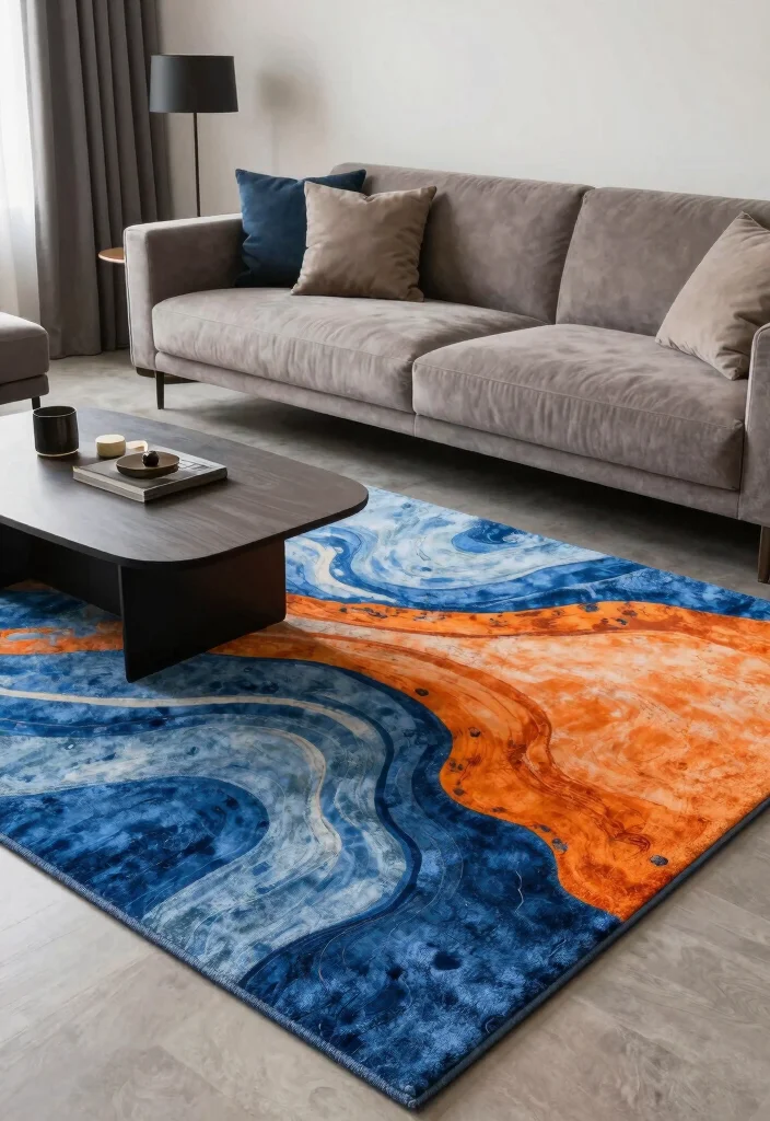 An artistic abstract rug can transform a plain room into a vibrant space that tells your story.