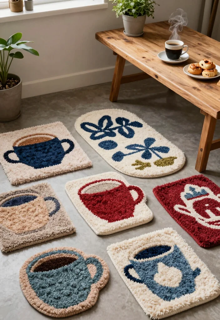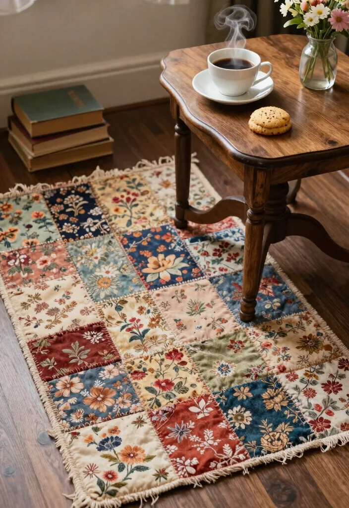 Infuse your coffee corner with warmth and history through vintage textile mug rugs crafted from repurposed fabrics. These unique pieces, made from old quilts or worn denim, tell a story with every stitch and fray. Imagine a patchwork rug featuring floral patterns, creating a cozy backdrop for your coffee ritual.