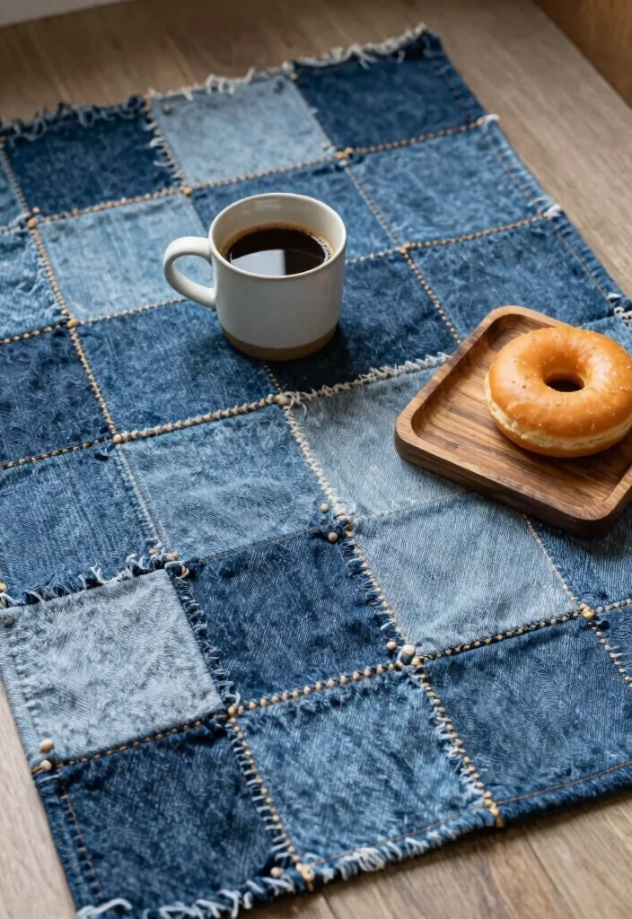 Get creative with upcycled denim mug rugs that are both stylish and eco-friendly! Repurposing old jeans not only reduces waste but also adds a unique texture to your coffee corner. Imagine a patchwork rug made from various denim shades, combining casual style with durability.