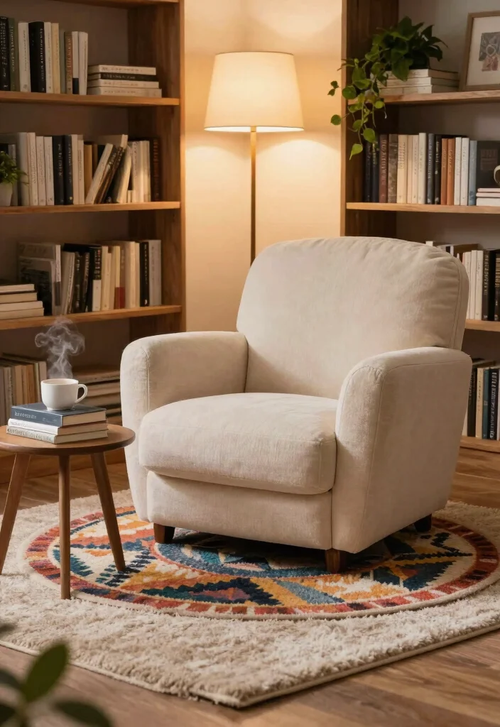 For practical implementation, include a plush oversized chair or bean bag for ultimate comfort. A small side table can hold your favorite books and a warm beverage, while a well-placed floor lamp or wall-mounted light sets the perfect reading ambiance. Consider using rugs that are easy to clean to maintain a tidy space.