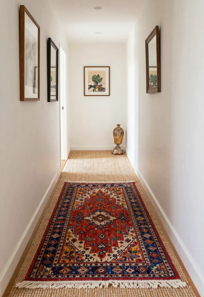 Begin with a long, narrow base rug, layering a shorter patterned runner on top to guide the eye down the hallway. Ensure seamless color transitions from room to room and consider adding accent decor like wall art or mirrors to enhance the hallway’s appeal. This thoughtful layering can create a seamless flow throughout your home.