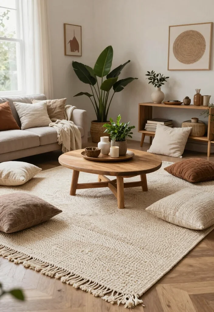 Geometric rugs offer a modern touch while keeping the overall aesthetic calm and inviting. Opt for muted shapes in beige, taupe, or soft grey to maintain a cohesive look that feels balanced. These patterns create focal points in your rooms without overwhelming the design, making them perfect for minimalist spaces. When combined with understated furniture, they can truly shine.