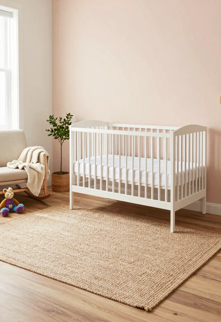 – Use natural fiber rugs under cribs to anchor the space.