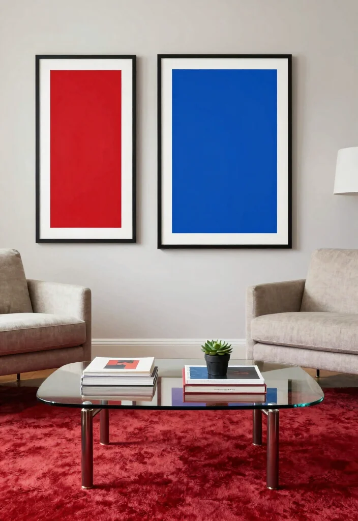 – Introduce neutral accents in cushions or artwork to break the intensity.