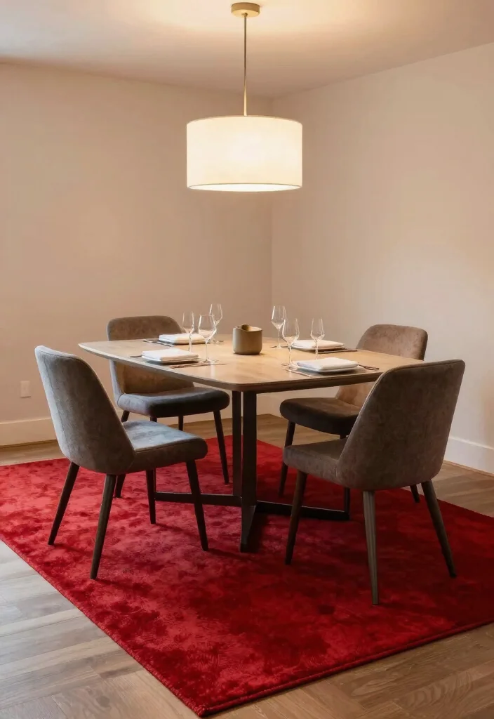 A red rug can serve as a beautiful focal point in your dining area. Placing a bold rug under your dining table sets the stage for memorable meals and gatherings.