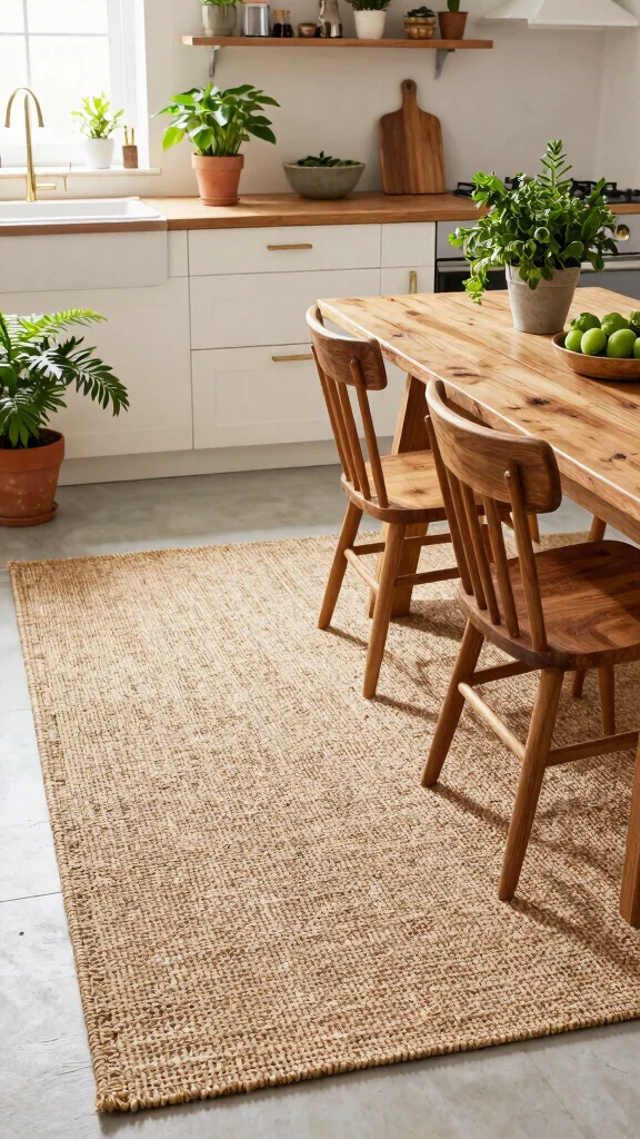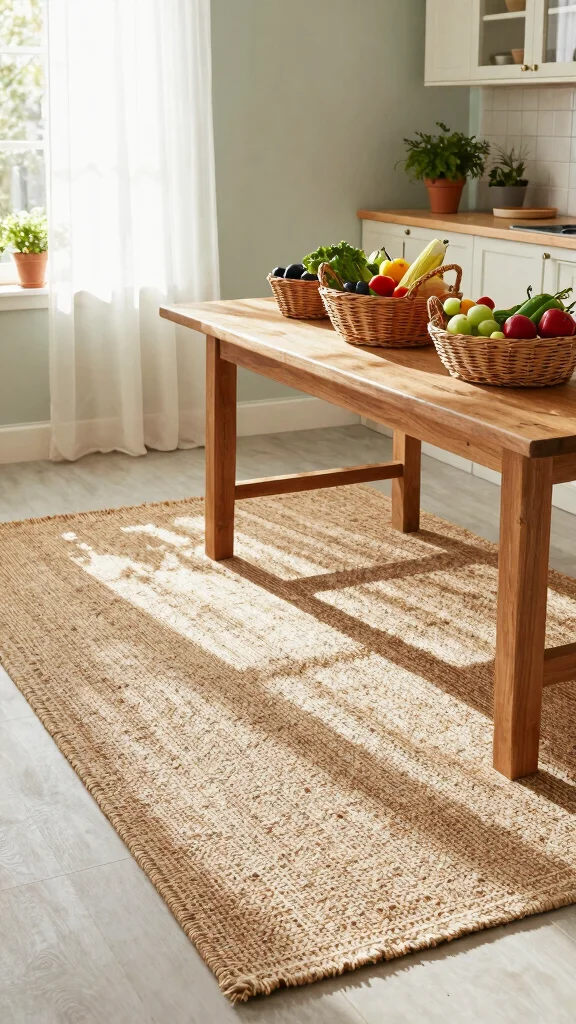 Did you know jute fibers are a fast-renewing option—jute crops reach maturity in about 120–180 days? They’re biodegradable, durable, and eco-friendly, a natural fit for rugs in kitchen ideas, pairing with wood and bright countertops. Regular vacuuming and a quick soap spot-clean keep your eco-friendly rug looking fresh.