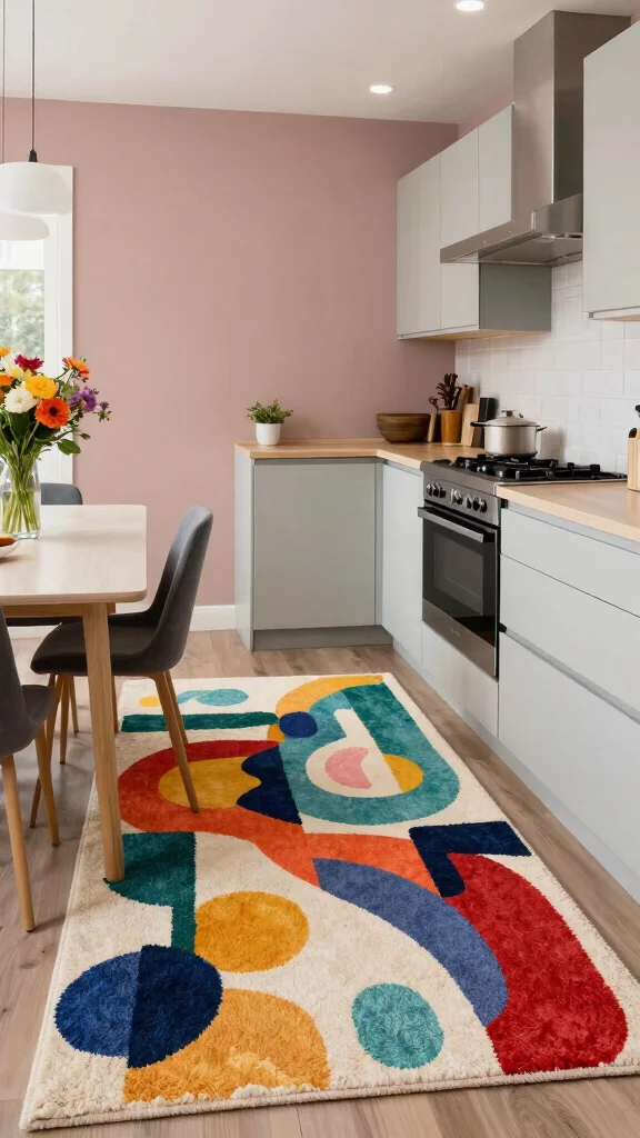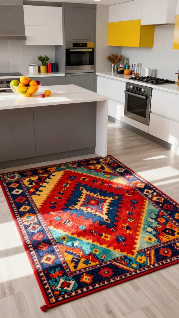 Bold patterned rugs make a striking statement in your kitchen! Featuring vibrant colors and dynamic designs, these rugs allow you to showcase your personality through decor. Whether it’s a colorful floral print or an abstract pattern, bold rugs inject energy into your space.