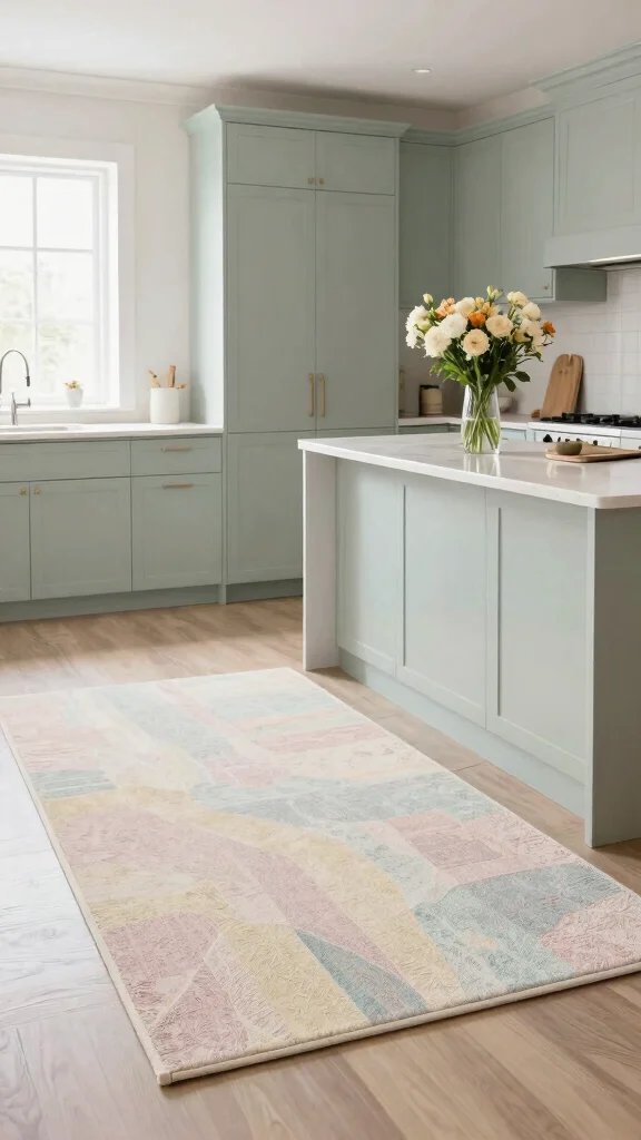 Muted pastel rugs create a soft and serene atmosphere in your kitchen. Featuring gentle colors, they add elegance without overwhelming the space. Perfect for modern kitchens, they harmonize beautifully with stylish cabinetry and decor.