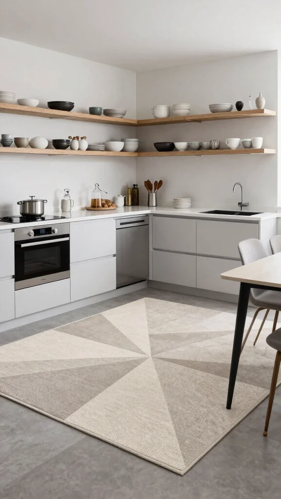 Minimalist geometric rugs are perfect for modern kitchens seeking clean lines and simplicity. Their striking patterns can transform an understated space into a focal point, adding visual interest. Typically featuring muted colors, these rugs easily coordinate with various design styles.