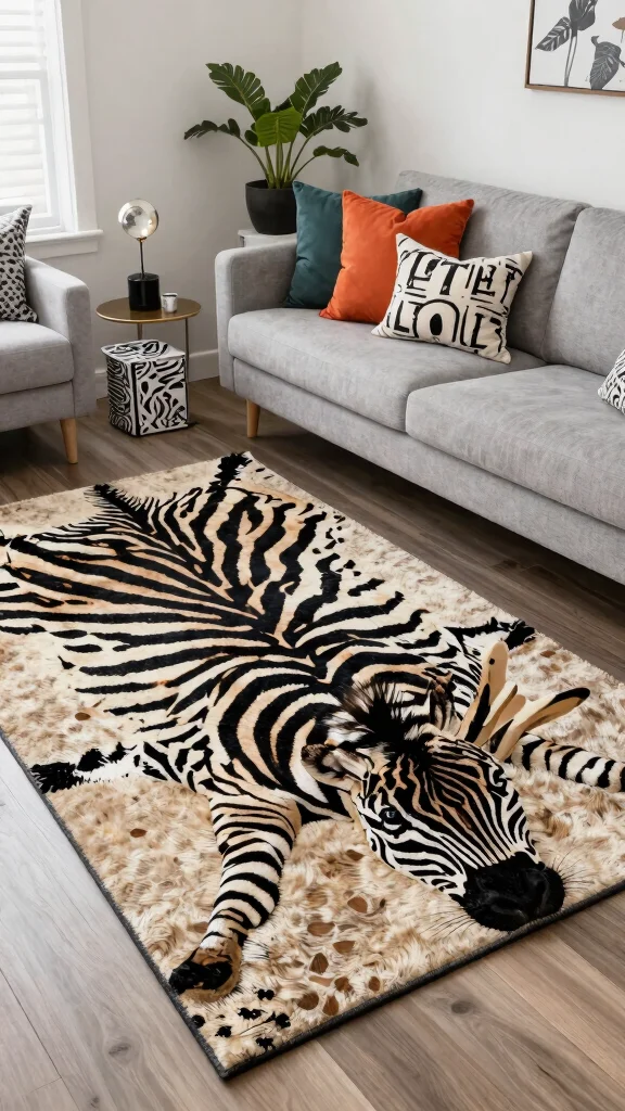 When incorporating animal prints, choose a rug that complements your existing color scheme to maintain balance. Use these prints as accents rather than the main focus for a more refined approach. Pairing animal prints with natural elements, like wood and plants, can create a wonderfully eclectic vibe.