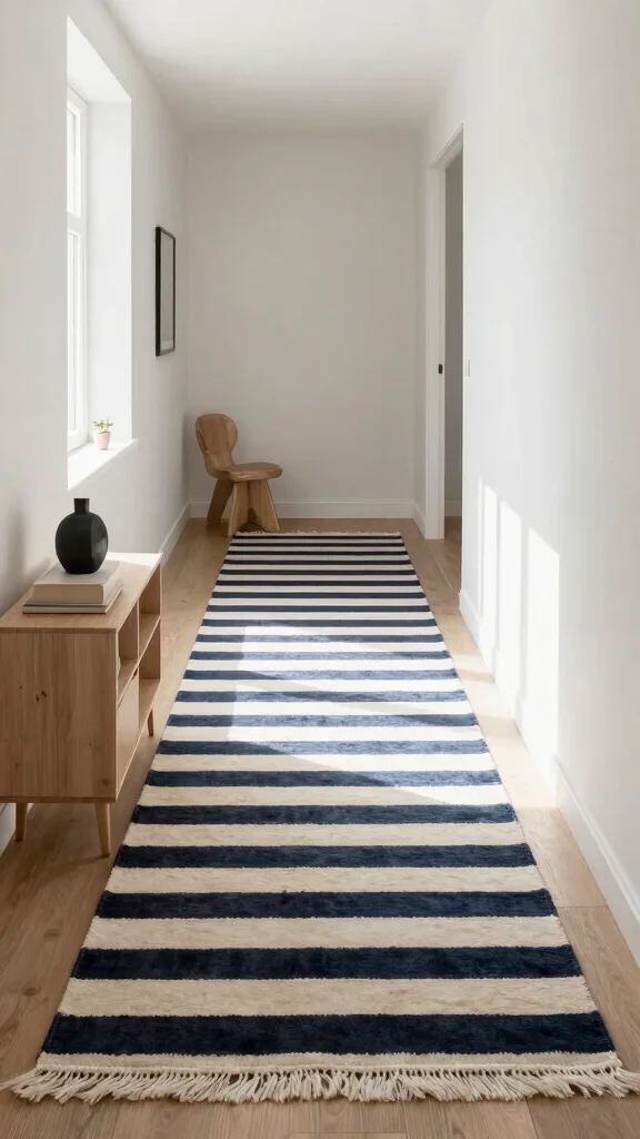 Selecting a striped rug allows you to uphold a minimalist vibe while adding a touch of fun and personality that elevates your decor.