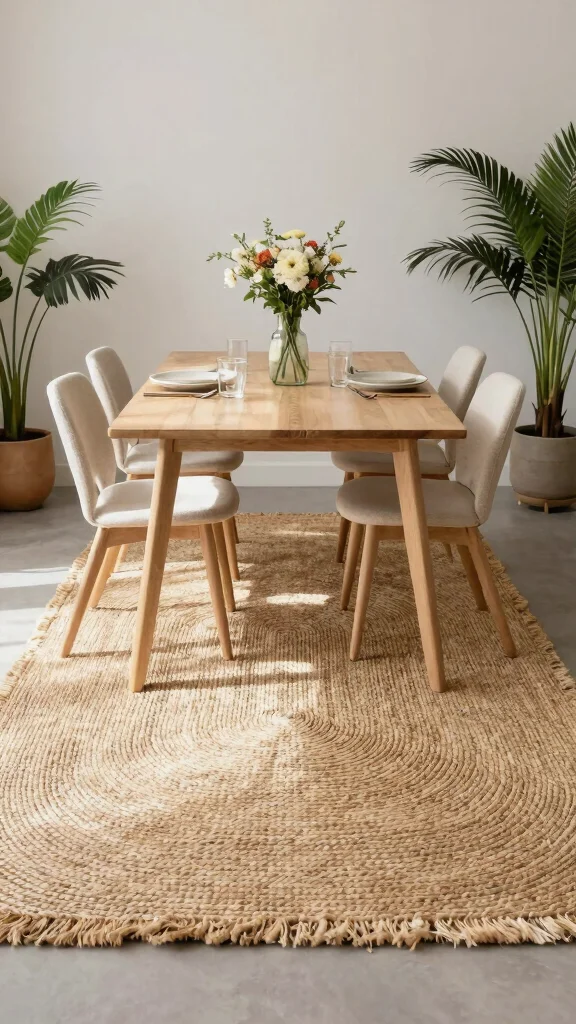 – Incorporate jute accessories like baskets to complement the rug.