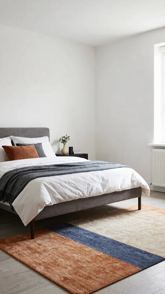Color-blocked rugs can serve as striking statement pieces without cluttering your minimalist decor. By utilizing two or three harmonious colors, these rugs create subtle yet captivating visual interest. Imagine a color-blocked rug adding a pop of color to a monochrome room, bringing life and vibrancy while maintaining a clean aesthetic. Their simplicity allows them to blend seamlessly with various decor styles.