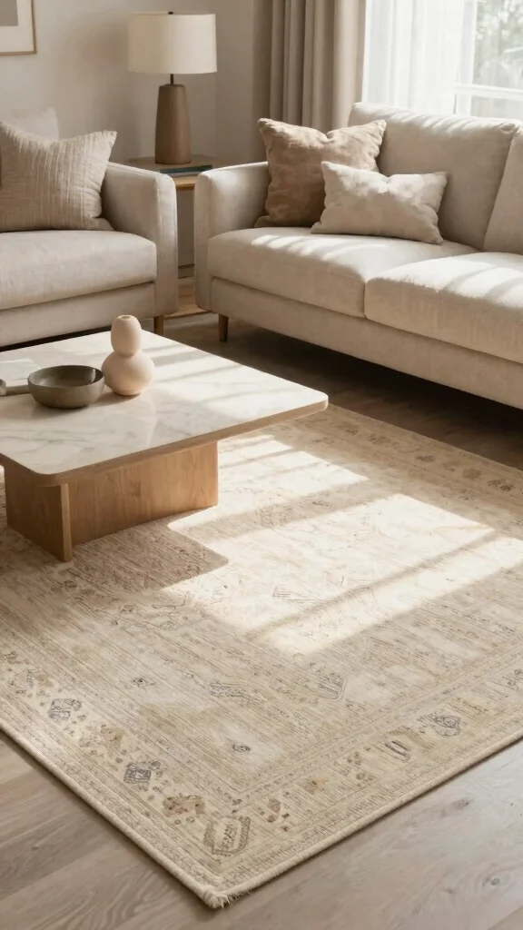 Fun fact: Jute rugs offer a warm, earthy vibe at a budget-friendly price—often 20-40% cheaper than wool. In rugs minimalist spaces, a simple jute weave grounds a light sofa and adds texture without overwhelming the room.