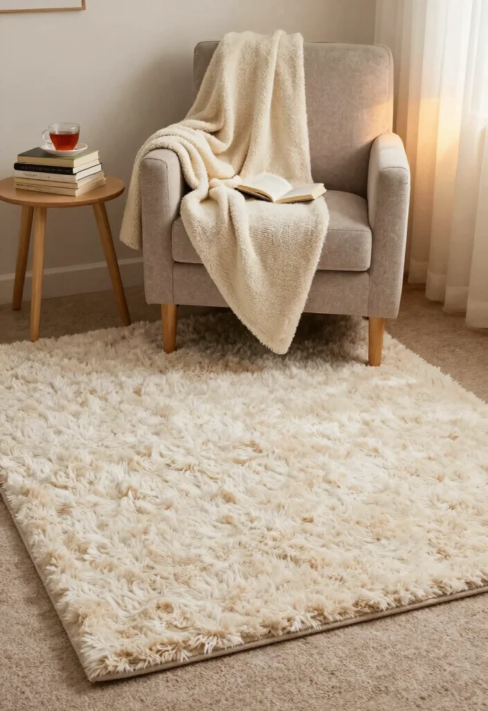 For book lovers, a cozy reading nook is essential! Layer a soft, plush rug over carpet to create an inviting space perfect for curling up with your favorite book. Enhance comfort by adding a small armchair or floor cushions, making it a perfect retreat.