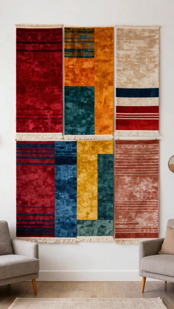 Explore color blocking by combining bold rugs in contrasting colors to create an eye-catching feature on your wall. This vibrant arrangement energizes the space and creates a focal point that draws attention. Opt for rugs with saturated colors to make a statement while pairing them with neutral decor to let them shine.