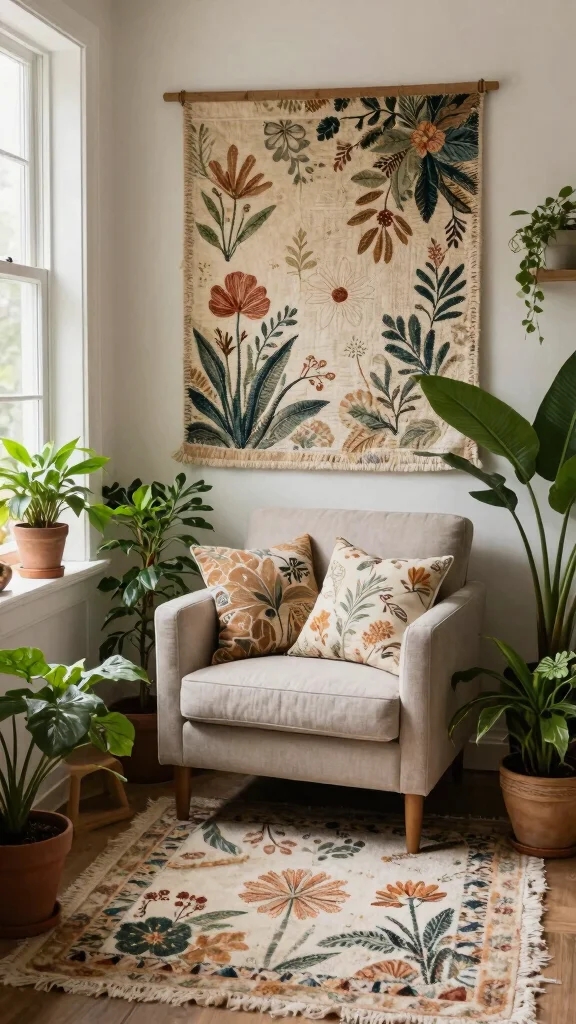 If you’re a nature lover, consider hanging rugs that evoke the beauty of the outdoors. Choose designs with floral patterns or earthy tones to cultivate a tranquil ambiance reminiscent of natural landscapes. This approach creates a peaceful retreat in your home, ideal for relaxing with a good book or enjoying quiet moments.