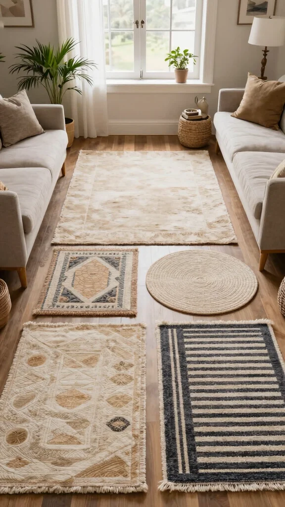 – Start with a Base Rug: Choose a larger, neutral rug as a foundation.