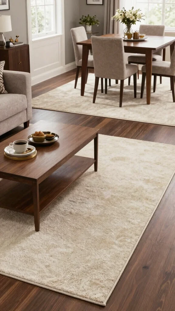 – Dining Areas: The rug should extend beyond chairs for ease of movement.