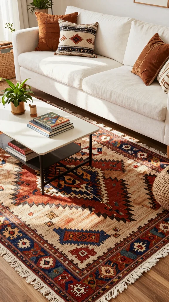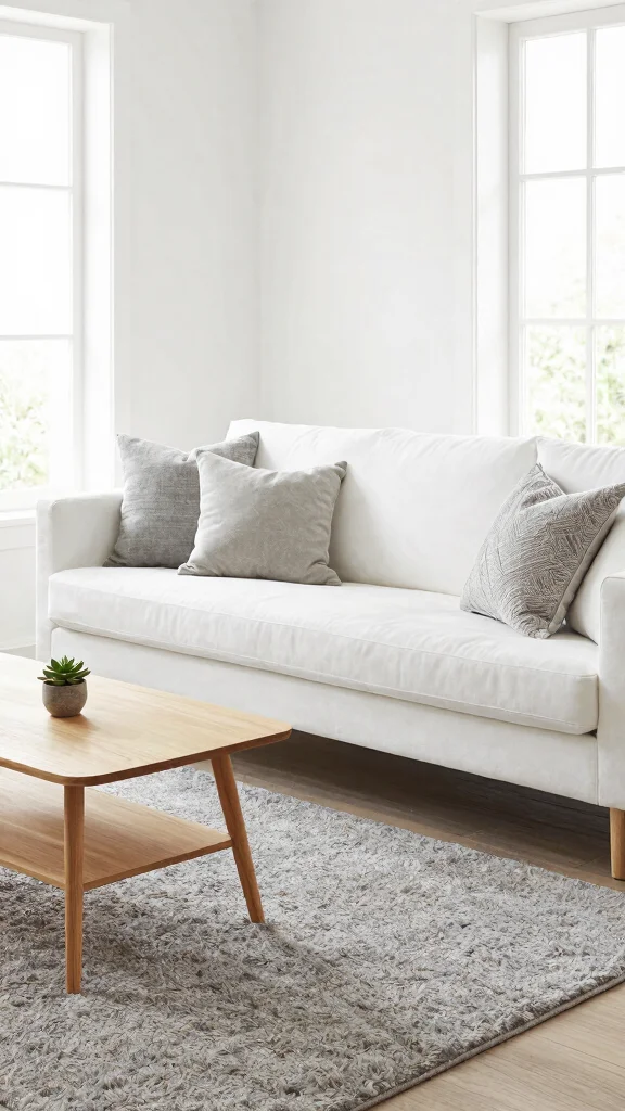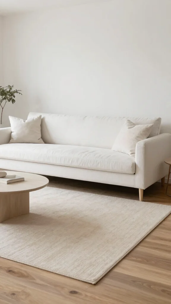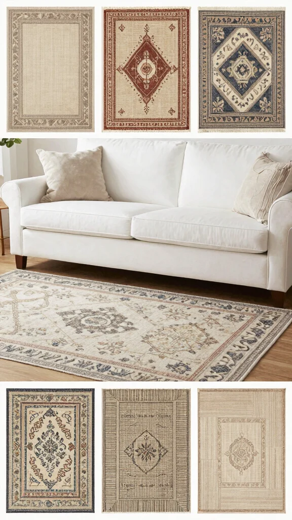 Pro Tip: The most important measurement to consider is the rug’s size in relation to your furniture arrangement. It’s often best to go larger for a cohesive look that ties the room together, especially when you have a stylish white couch as your focal point! 🚀