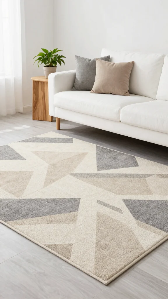 Selecting a rug with bold geometric shapes in muted colors creates a striking yet harmonious look that feels fresh and exciting.