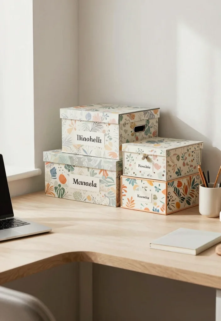 Personalized storage boxes elevate organization by adding a unique touch to your decor. These boxes can be customized with names, patterns, or designs, making them especially suited for kids’ rooms or home offices. With lids to keep dust away, they ensure your items are stored safely and stylishly.