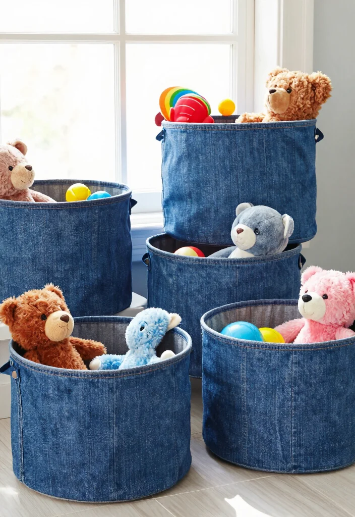 Upcycled denim baskets offer a creative and sustainable twist on traditional storage solutions. Making use of old denim, these baskets provide a stylish option for organizing laundry, toys, or other household items. Their durable fabric adds a unique texture, while the varying shades of denim contribute character to your decor.