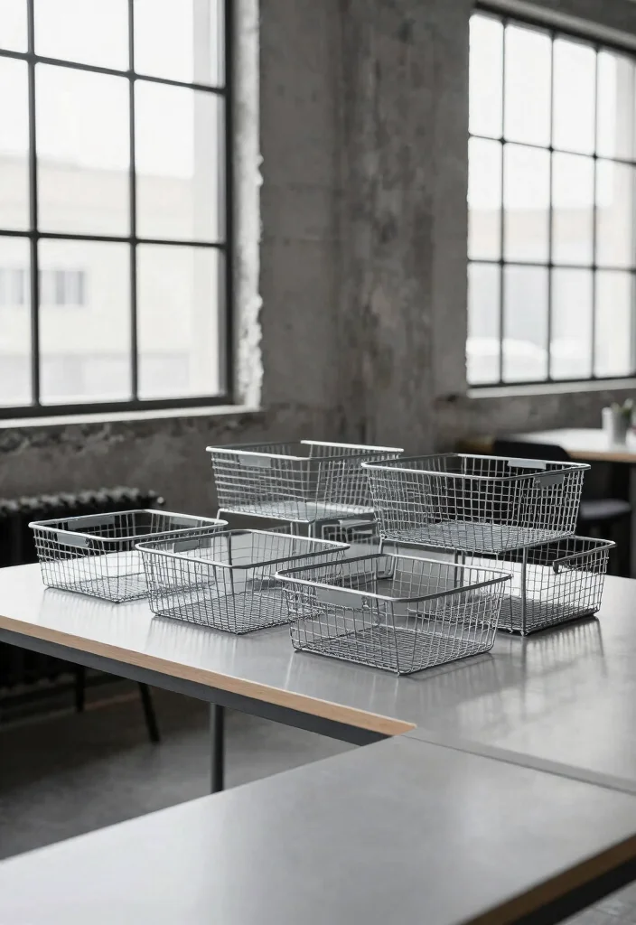 – Incorporate baskets in a minimalist workspace for a clean aesthetic.