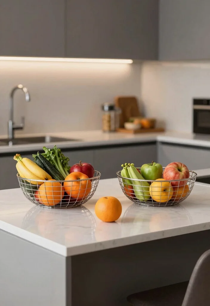 For a sleek, modern touch, wire baskets are a fantastic choice. Their open design is perfect for holding everything from fresh produce in the kitchen to magazines in the living room. This design allows for ventilation, keeping contents fresh while maintaining a chic appearance.