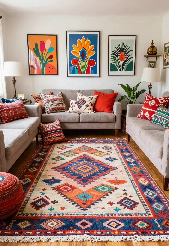 Here are some tips for incorporating colorful boho rugs: