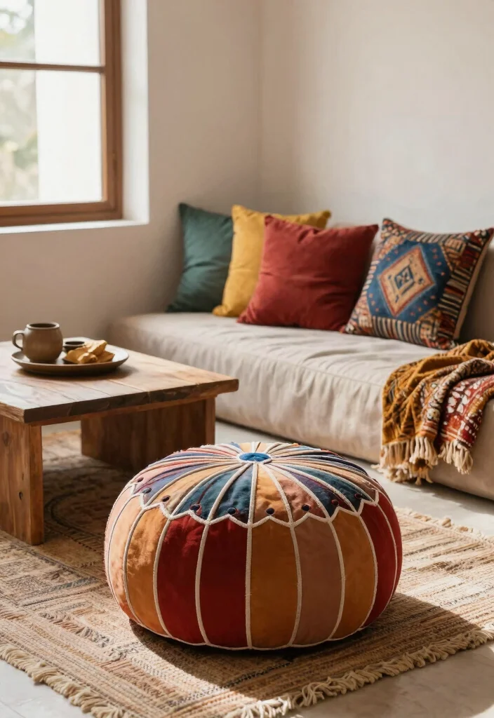 9. Moroccan Poufs and Rugs