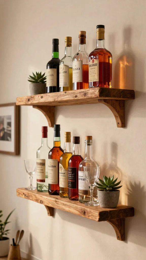 To make the most of these shelves, consider placing them at varying heights to create visual intrigue. Combine them with vintage bar tools or cherished photographs to imbue your setup with personality.