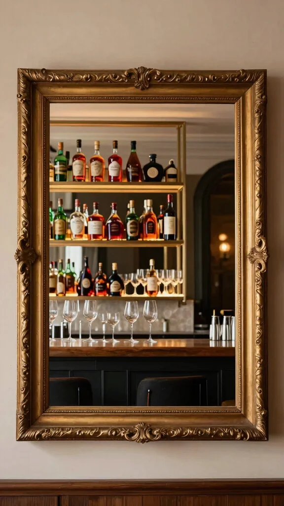 This creative concept draws attention and adds a dramatic flair to your wall bar. Use an old picture frame or a DIY wooden frame to establish a unique display area for your bar essentials. Fill the frame with shelves or use it to showcase special bottles. This not only serves as a conversation starter but also personalizes your space beautifully.