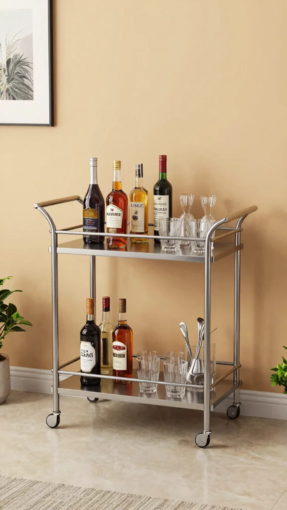 This minimalist design keeps your space feeling open while providing a dedicated area for your beverages. Depending on your space, you can choose a compact or elongated cart that works best. Add decorative elements like framed art, small plants, or stylish coasters to elevate its aesthetic.