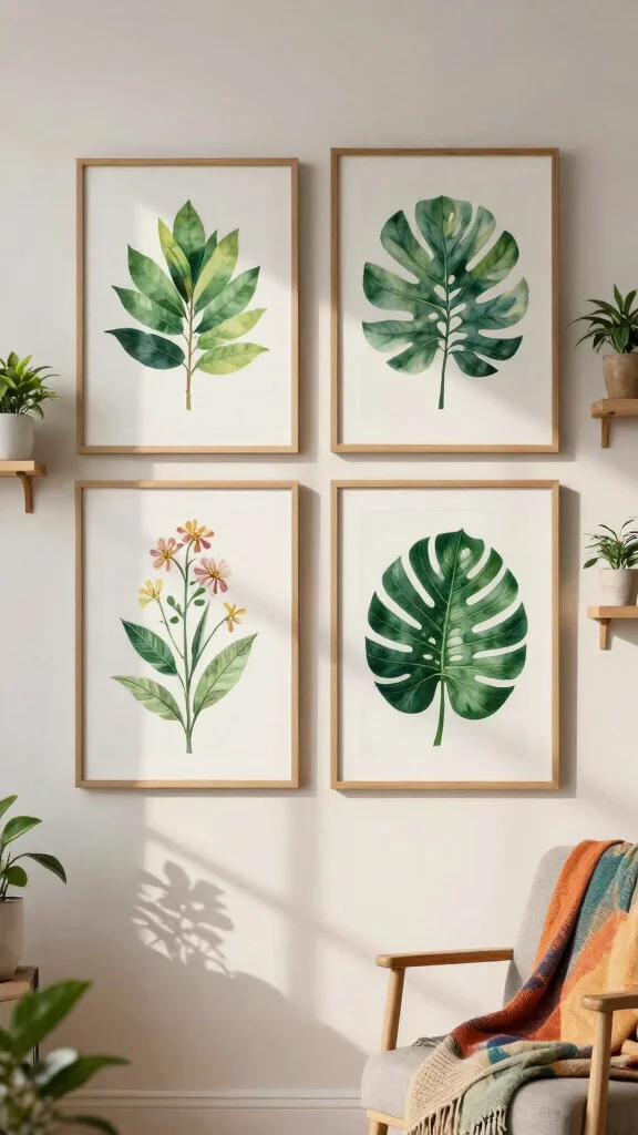 This approach not only beautifies your space but also fosters a refreshing ambiance. When paired with real plants, the artwork enhances the organic theme, making your home a peaceful retreat.