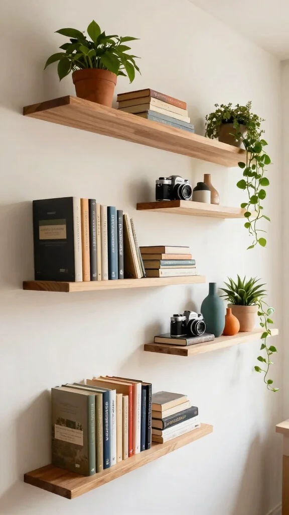 Floating shelves offer a stylish and practical way to highlight your personal treasures and artwork. These versatile shelves are perfect for showcasing books, plants, and decorative items that tell your unique story. Imagine how a carefully styled shelf can spark conversations and bring character to an otherwise plain wall.