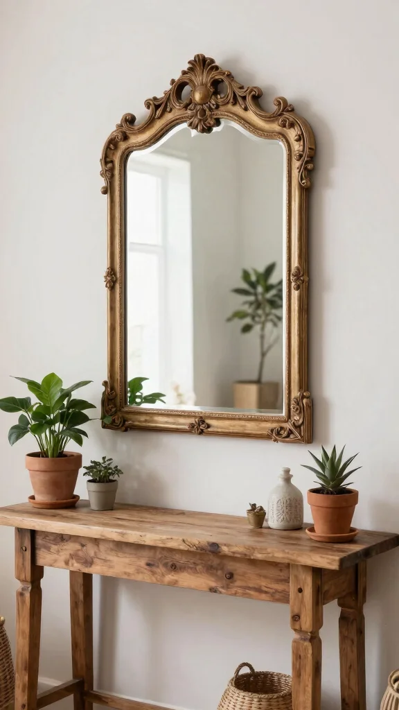 Vintage mirrors serve as dual-purpose decor, enhancing your space while adding a touch of elegance. These mirrors come in unique shapes and designs, making them perfect statement pieces for your walls. Picture a beautifully ornate vintage mirror above a console table, adding charm and character to your entryway.