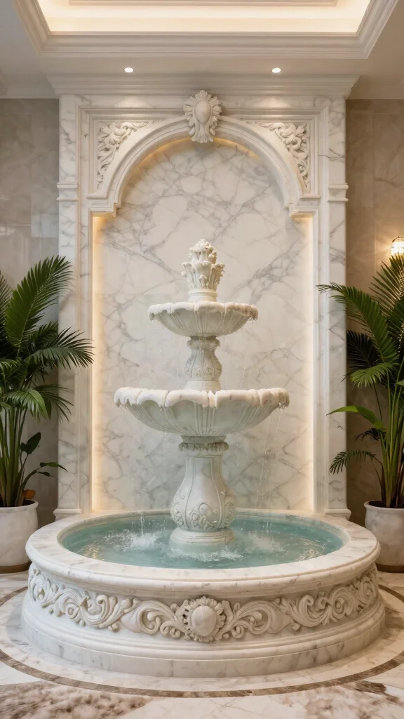 Incorporating a marble wall fountain into your space not only adds sophistication but also enriches the overall aesthetic by blending textures and materials beautifully.