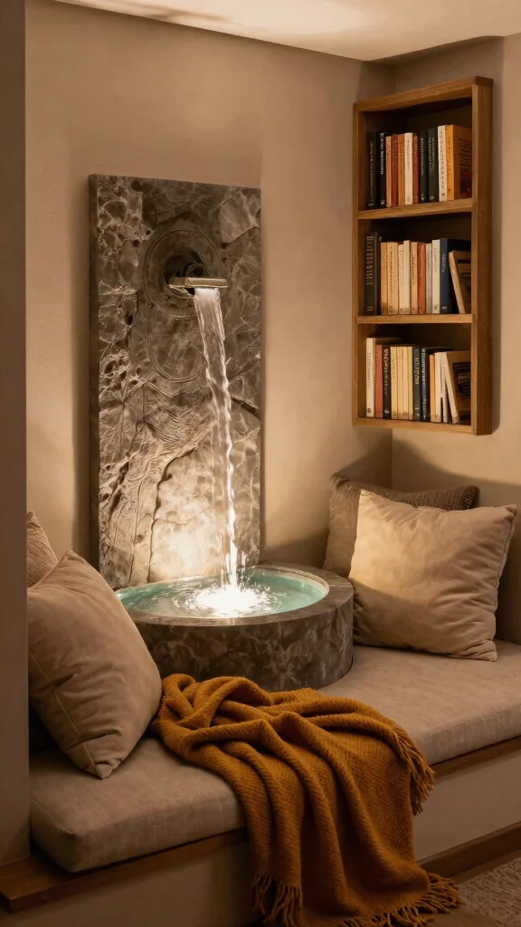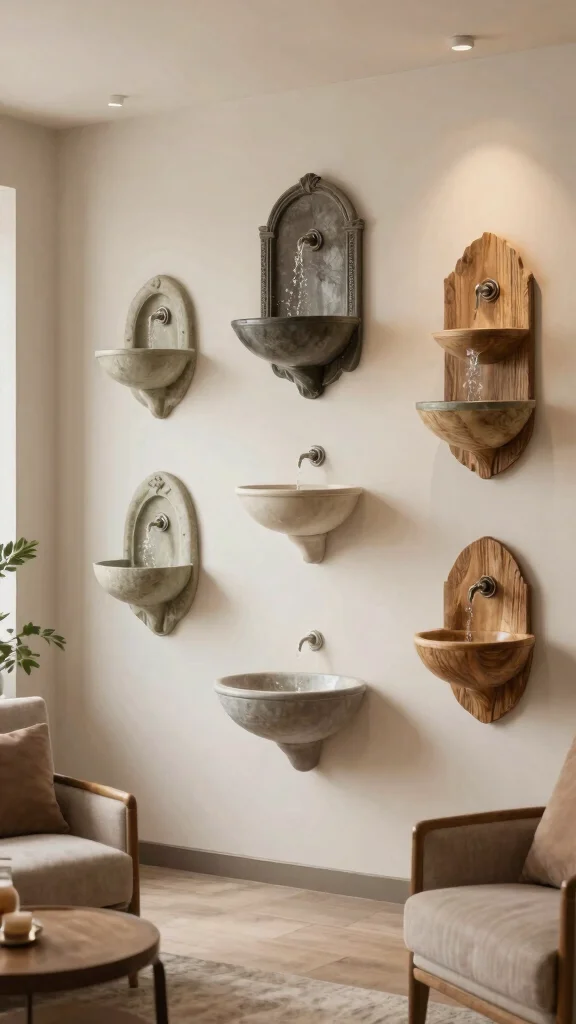 Materials set the vibe. For modern spaces, choose stainless steel, glass, or matte-black resin with clean lines. Traditional rooms sing with natural stone, carved slate, or bronze-finished panels. Cozy schemes respond well to ceramic textures or textured plaster. Consider how the fountain’s finish complements furniture, wall colors, and other decorative wall water fountains you own. Also think about cleaning ease and durability in everyday indoor water features to keep your design cohesive.