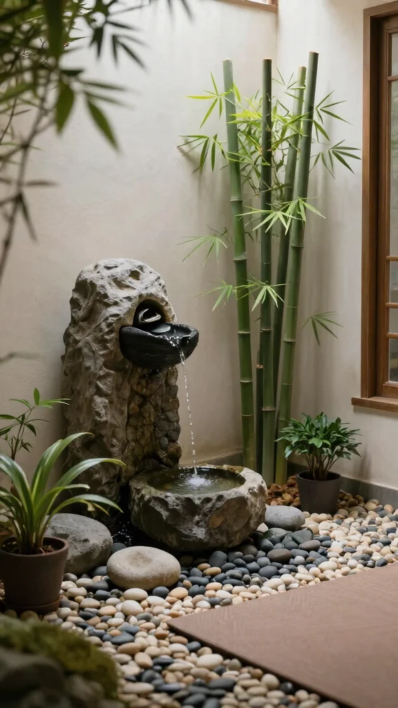 These fountains are excellent for small areas, as they promote relaxation and reflection. To deepen the zen experience, consider using smooth stones or sand around the fountain, mimicking the simplicity of a zen garden. Adding bonsai trees or bamboo can further complement the calming theme.