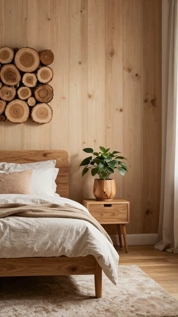 Incorporating natural wood accents can bring a touch of warmth and a hint of the outdoors into your bedroom. Wooden wall panels or decorative slices can create a rustic, bohemian vibe that feels inviting. Consider using reclaimed wood for an eco-friendly touch that adds character and history to your walls.