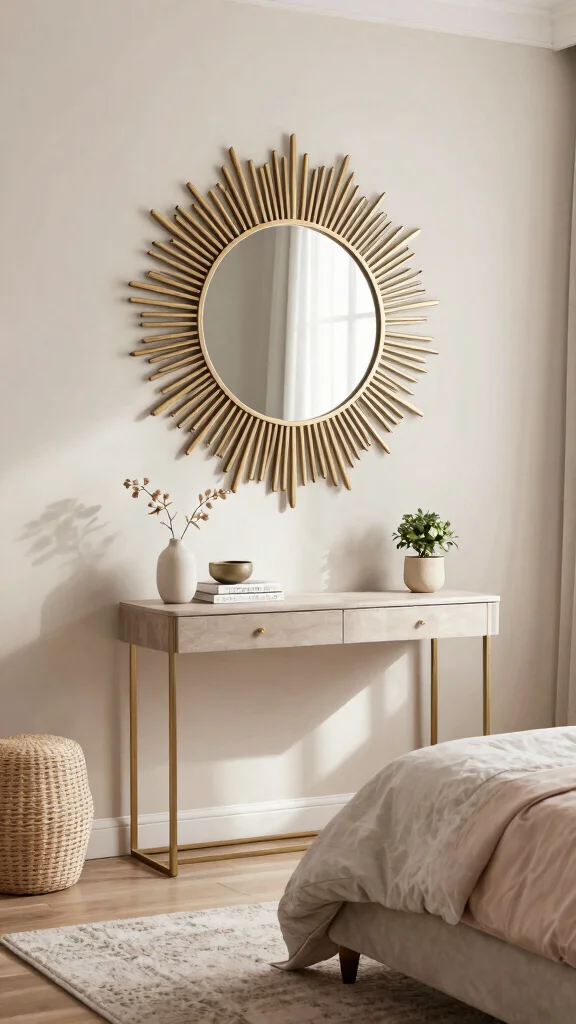 A statement wall mirror can be both functional and a striking focal point in your bedroom. Look for mirrors with unique shapes, like sunbursts or geometric designs, to add character to your walls. These mirrors not only create a sense of depth but also beautifully reflect light, enhancing the overall ambiance of your space.