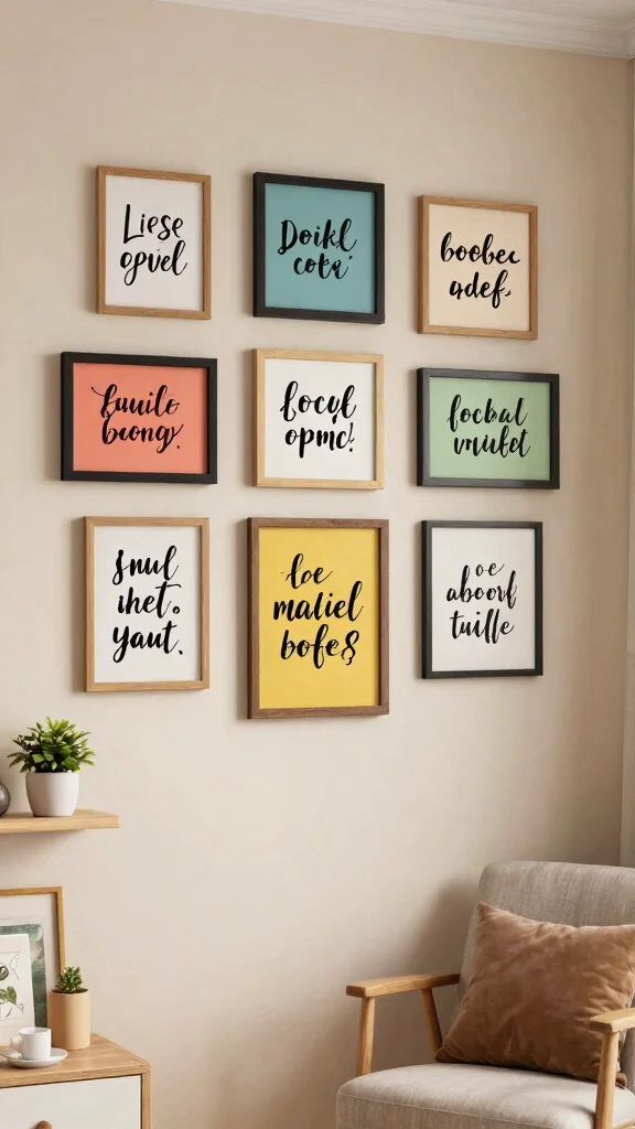 Varying fonts, sizes, and colors can create an engaging visual impact, while decorative elements like small plants or art pieces add depth. Regularly updating the quotes keeps the room feeling fresh and dynamic, fostering an ever-evolving atmosphere.