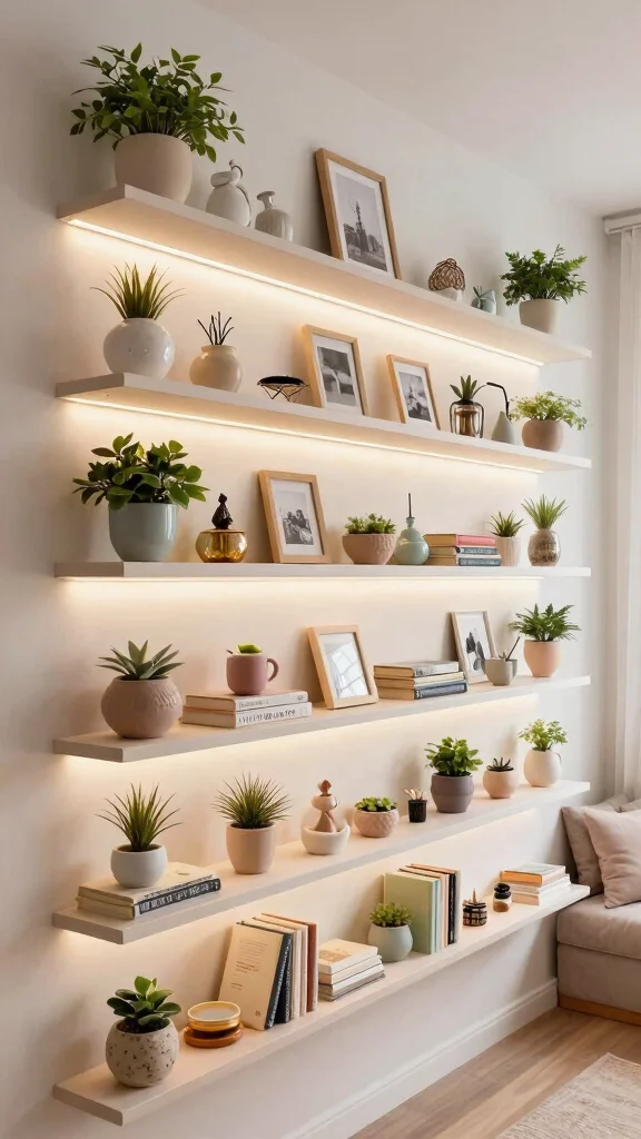 Incorporating small planters or whimsical decorations can add coziness, making your shelving display even more inviting.