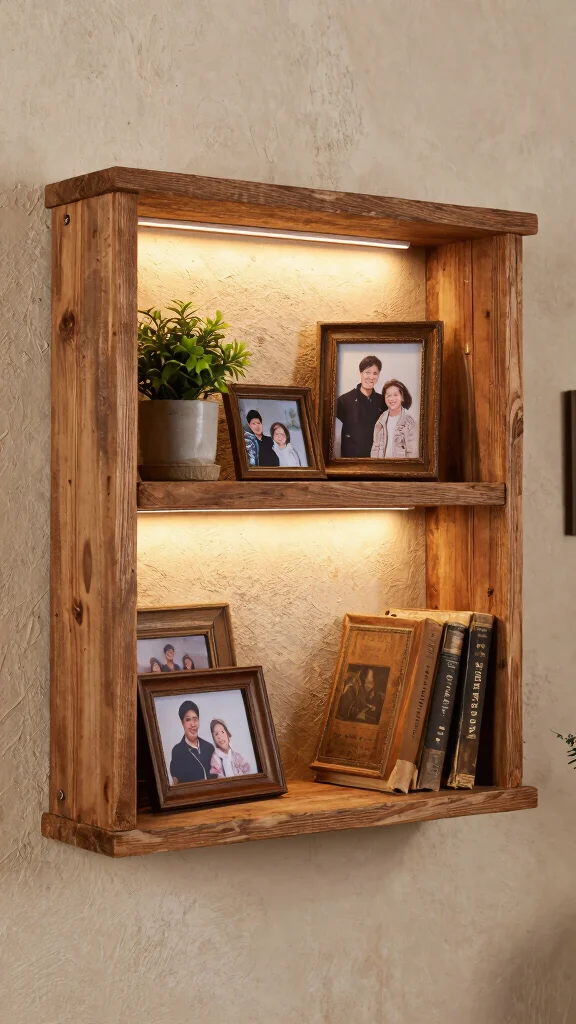 – Rustic wood shelf niches offer a cozy touch and can showcase your favorite decorative items beautifully.