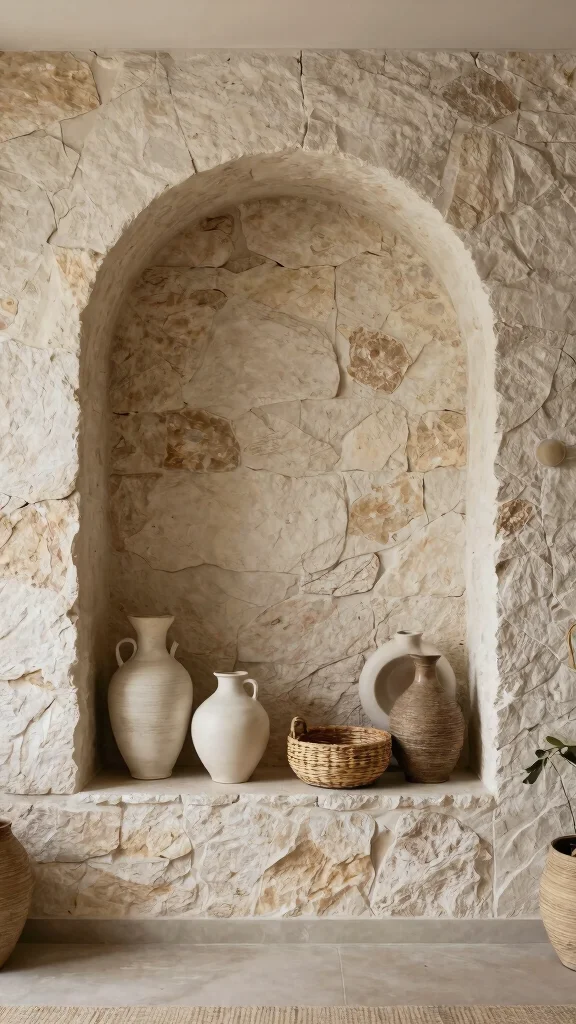 Fill the niche with items that complement the chosen texture, such as ceramic vases or woven baskets, creating contrast that adds complexity and dimension. This layering of textures enhances the overall aesthetic, making your decor feel rich and inviting.