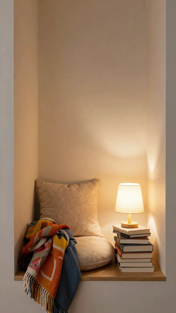 Transform a small wall niche into the ultimate cozy reading nook, perfect for relaxation and unwinding. With just enough room for a comfortable cushion and a few beloved books, this setup invites you to dive into a good story. Soft lighting, like a small bedside lamp or string lights, creates a warm and inviting atmosphere that enhances the reading experience.